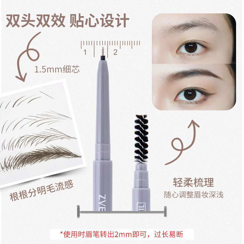 | nameOriginal | ZVEV soft and smooth fine double-headed eyebrow pencil is not easy to faint, root is clear and smooth, novice eyebrow pencil makeup generation |
